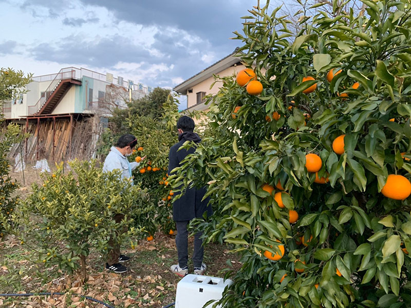 今回は美味しい清見オレンジが収穫期を迎えたとの事で、26Kブルワリーの醸造家が収穫の体験にお邪魔しました。
